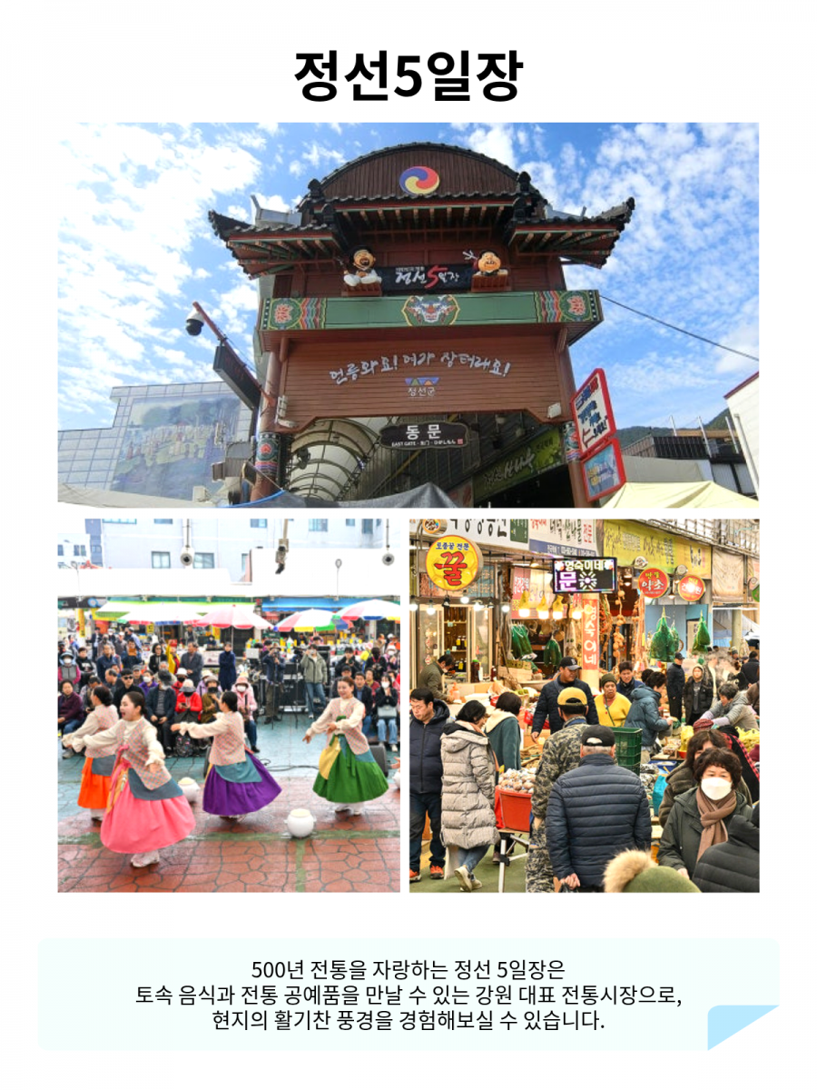 KTX타고 떠나는 '왕과사는남자' 영월 구석구석 1박 2일 영화 왕의 남자 촬영지와 동해 무릉계곡~정선 아라리촌까지! KTX 연계 상품으로 좌석 한정수량 선착순 마감입니다 공유하기 여행지역 강원도 동해, 정선, 영월 일대 포함사항 왕복교통비(KTX, 버스비), 숙박비, 전일정 입장료, 1박4식, 생수 제공 불포함사항 국내 여행자보험, 기사/가이드 매너팁, 싱글차지, 기타 개인경비, 간식 여행일정 출발일 매주 화요일, 목요일 인원 40 금액 330,000 원 설명